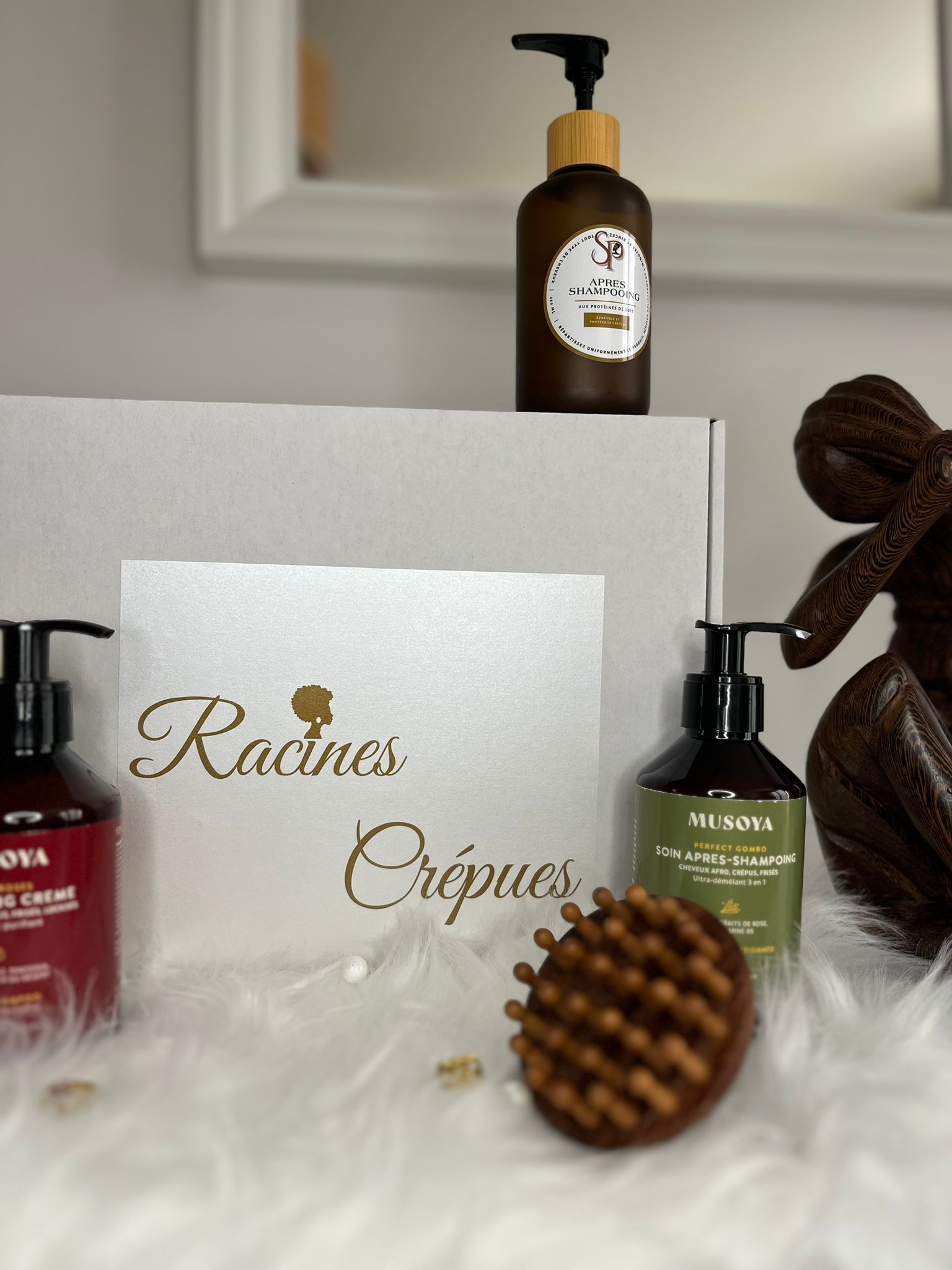 et recevez 3 à 4 produits, un accessoire, des conseils et une playlist dans chaque box pour vous faire découvrir l’univers de Racines Crépues!